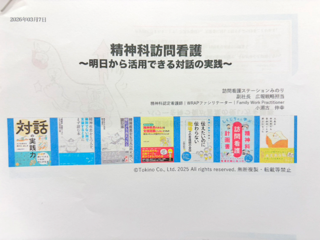 今回の講師は、訪問看護ステーションみのりの小瀬古先生。