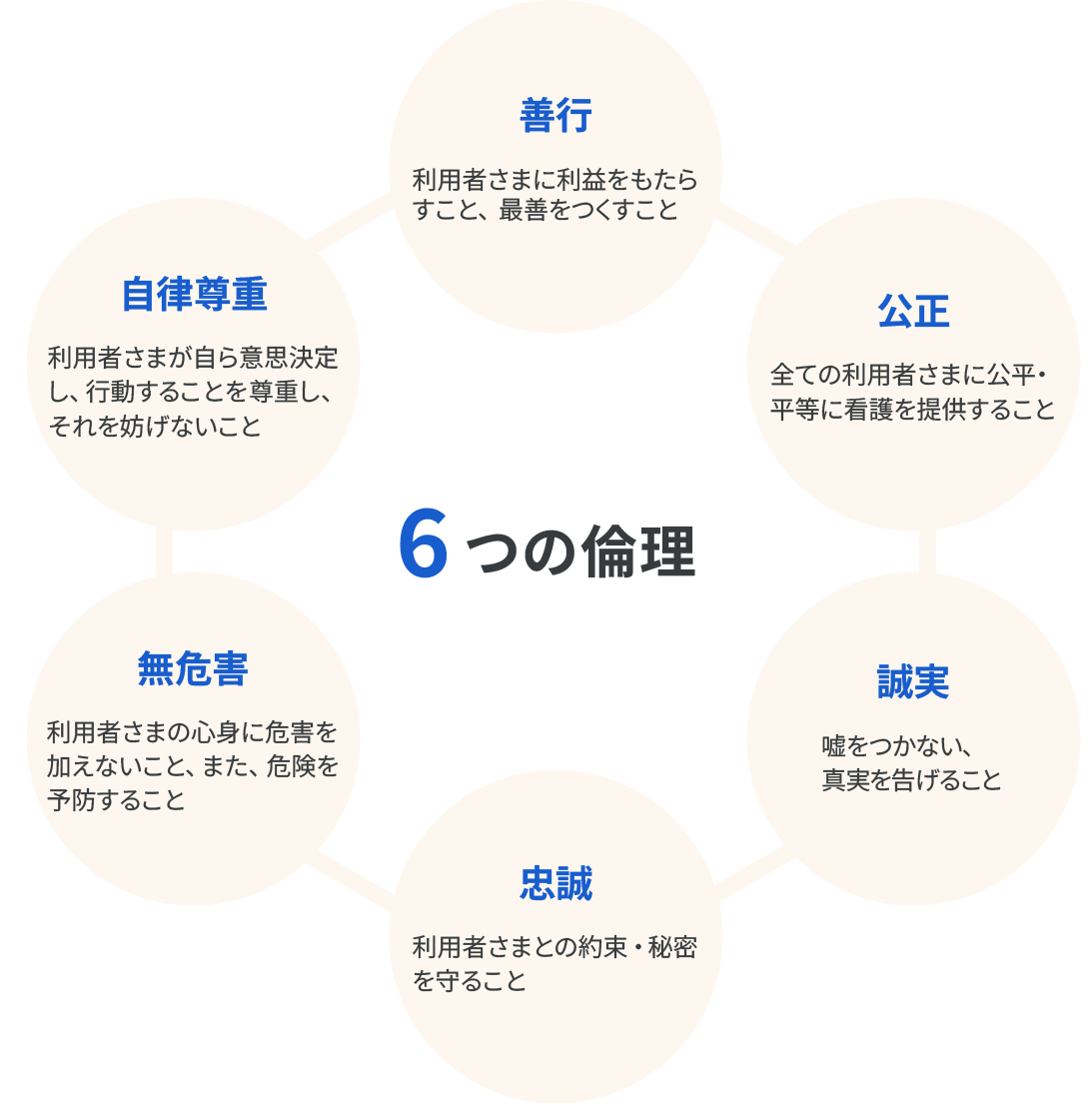 当ステーションは看護倫理を大切に考えています。どれだけ素晴らしい知識や技術があったとしても、人として、看護師としての倫理観がなければ利用者さまを尊重した看護の提供は難しいと考えているからです。
